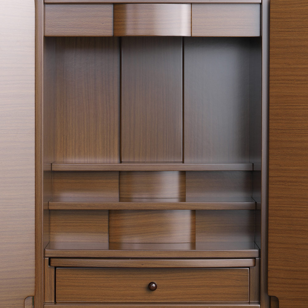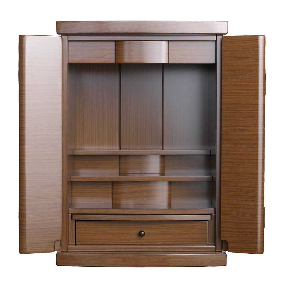 上置きタイプの小型仏壇です。棚のうえにおけるので設置スペースをとりません。